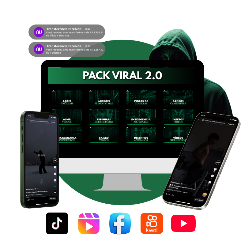 Transforme seu tempo livre em dinheiro! Com nosso Pack Viral 2.0, você posta vídeos prontos, pega milhões de visualizações e começa a receber em dólar e tudo de forma simples e rápida.